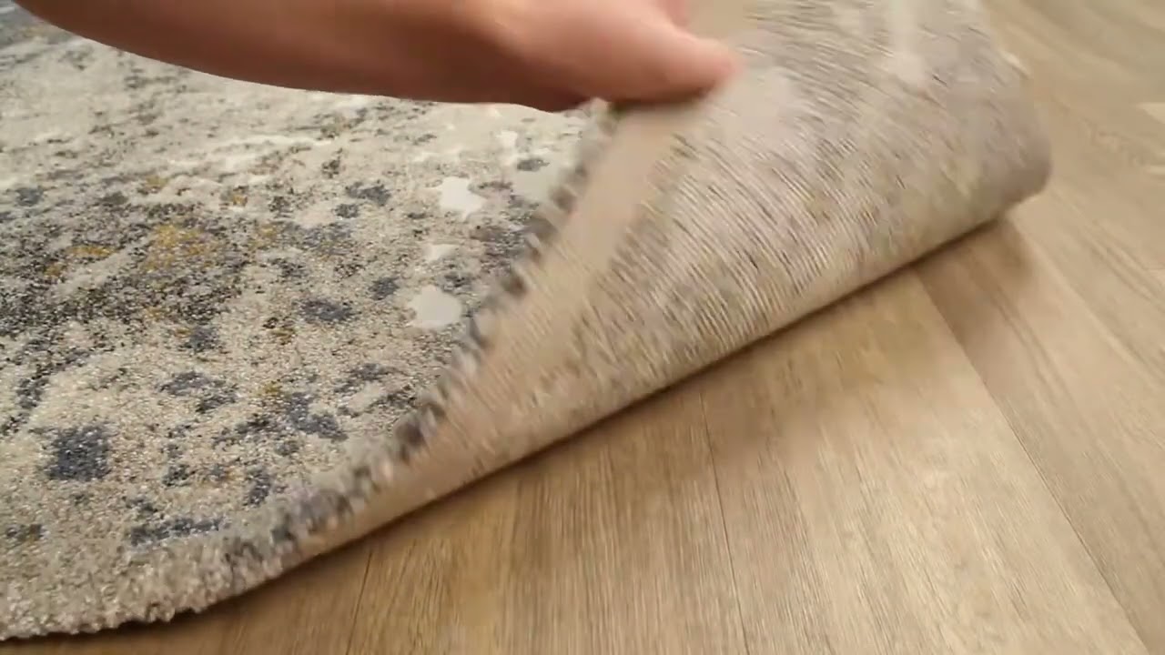 The Alabaster Abstract Area Rug brings a sophisticated, lived-in elegance to any room with its beautifully layered palette of gray, beige, cream, and subtle gold accents. The allover abstract pattern mimics the look of aged plaster or weathered stone, giving it a distressed, artistic quality that feels both modern and timeless. Machine woven from a durable blend of 91% polypropylene and 9% polyester, this high-pile rug offers a plush, thick underfoot feel — measuring 0.54 inches in pile height and 0.87 inches total thickness.