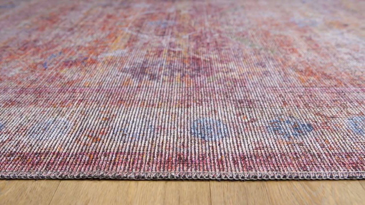 Old-world Persian charm meets modern washability — the Alcoy's rich burgundy, rust, and blue distressed floral design looks like a family heirloom you can toss in the washing machine.