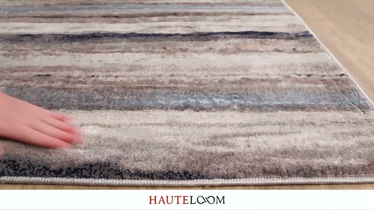 The Aldavilla Abstract Striped Area Rug brings a calm, sophisticated energy to any room with its layered horizontal brushstroke pattern in soft beige, cream, tan, and navy blue. The design feels like a watercolor painting — stripes that blur and bleed into one another, giving it an artistic, almost coastal-modern quality that works beautifully in living rooms, bedrooms, or dining spaces. Machine woven from 100% polypropylene, this rug is built for real life: stain resistant, durable, and easy to maintain in high-traffic areas.