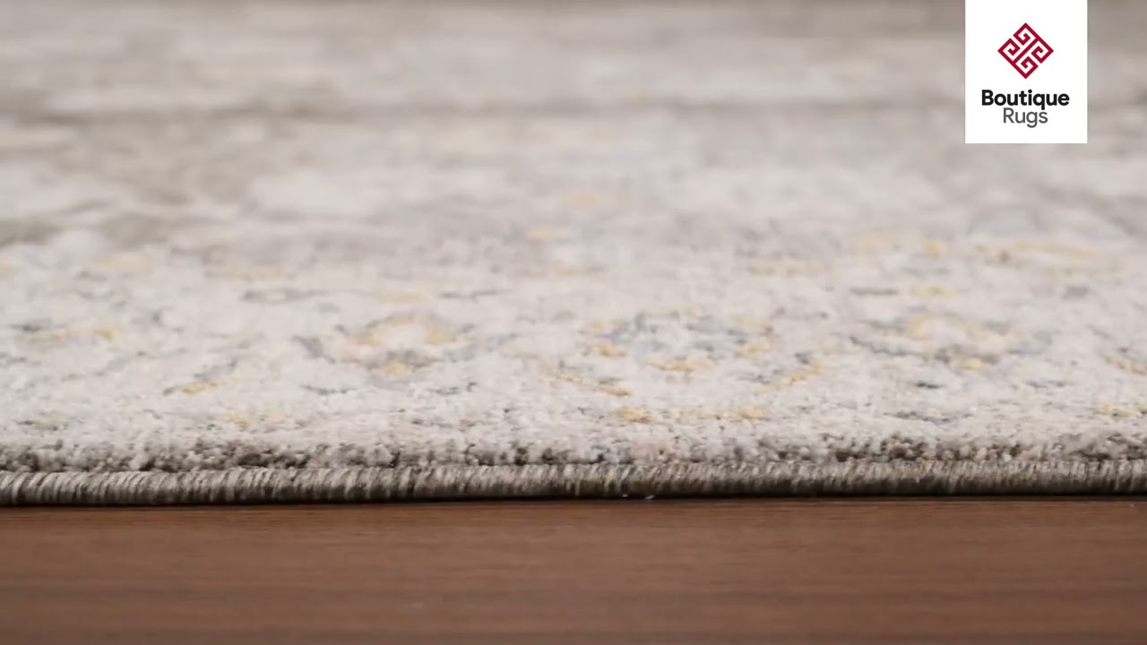 Classic Persian floral design in warm gray and cream with elegant fringe detail — timeless style that works in virtually any room.