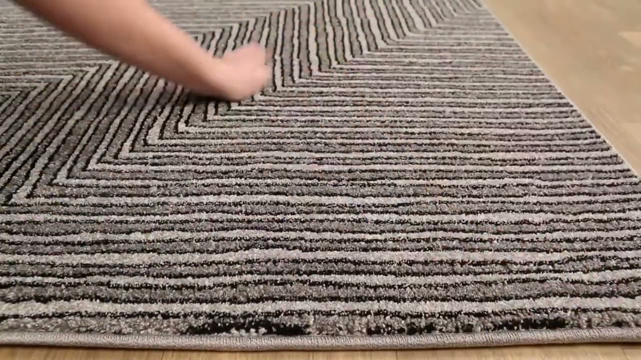 The Artois Area Rug is a striking modern statement piece built around a bold, concentric geometric pattern that draws the eye inward with clean, architectural lines. The palette is a sophisticated mix of medium gray, charcoal, and soft light gray — cool-toned and versatile enough to anchor almost any contemporary or minimalist living space. Machine woven from durable polypropylene and polyester, this rug is built to handle everyday foot traffic without losing its good looks.