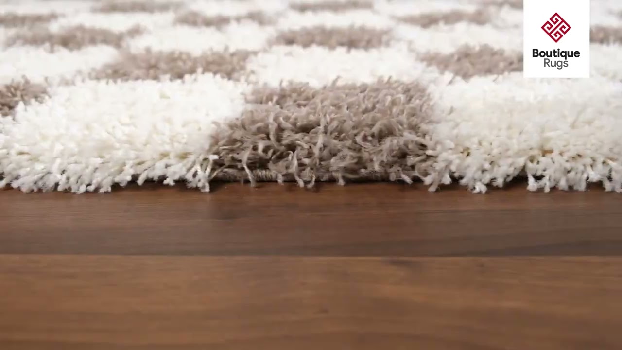 Bold checkerboard pattern meets ultra-plush shag — the Atira brings retro-modern charm and serious softness to any room in warm brown and cream.