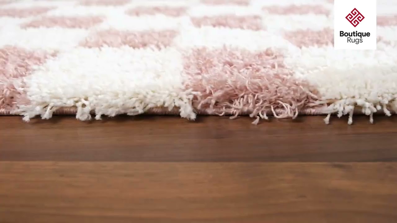 Bold checkerboard pattern meets ultra-plush shag in soft blush pink and cream — the Atira is equal parts cozy and stylish, perfect for bedrooms and nurseries.