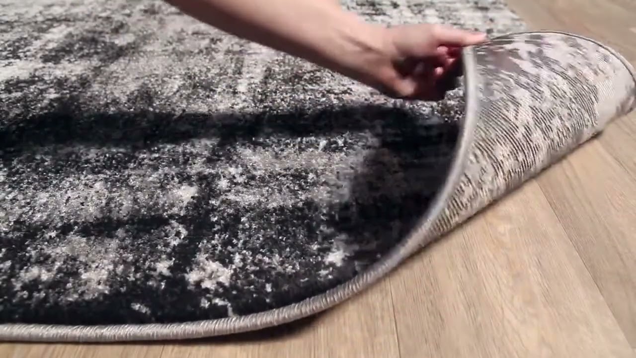 The Augusta Area Rug brings a bold, painterly energy to any modern or contemporary space with its striking abstract pattern in deep black, layered charcoal, and smoky gray tones punctuated by flashes of white. The design has an intentionally distressed, faded quality — like an artist's canvas left to weather beautifully — making it a natural fit for rooms that want texture and visual depth without loud color. Machine woven from 100% polypropylene, this medium-pile rug is built for real life: stain resistant, robot vacuum friendly, and tough enough for high-traffic areas like living rooms, hallways, and entryways.