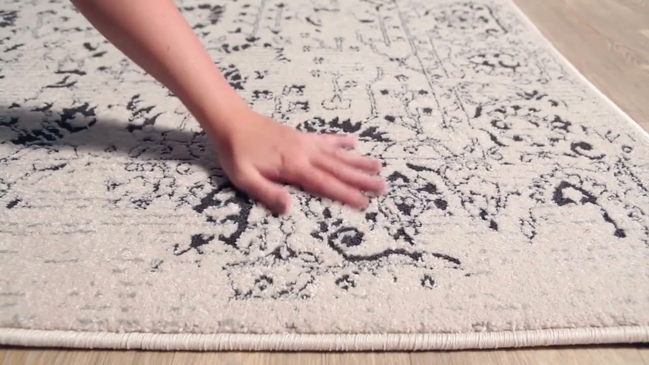 The neutral cream and charcoal palette is incredibly versatile — reviewers consistently note the colors look exactly as pictured, with a base that reads more ivory than yellow and charcoal details that add real depth and contrast. At 0.39 inches of pile height, it's soft underfoot without being overly thick, making it a great layering piece or standalone statement rug. An exceptional value that looks far more expensive than it is.