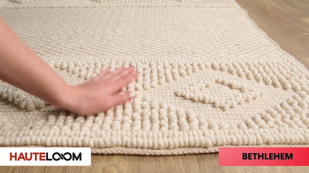 Hand woven from wool and cotton in a soft cream palette, the Bethlehem's tone-on-tone diamond stripe pattern brings quiet rustic charm to any space.