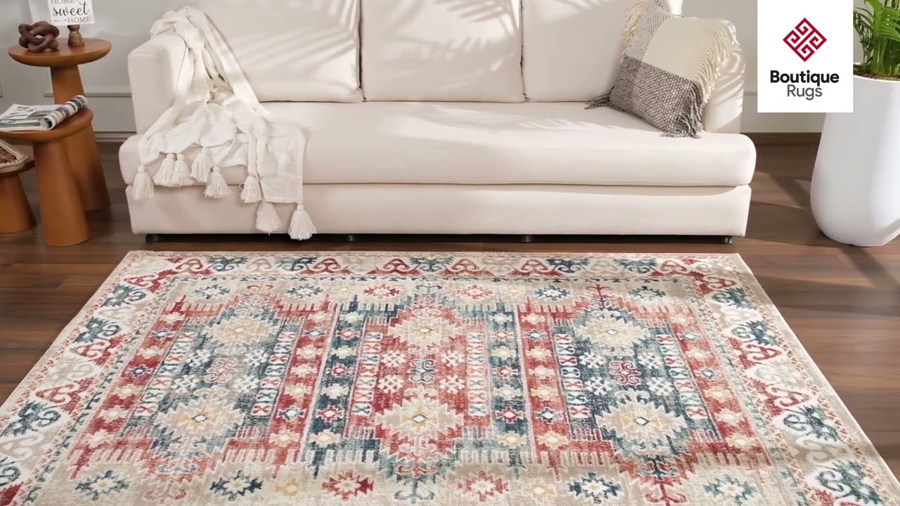 The Bindi Area Rug brings the timeless beauty of Persian and tribal design into your home with a rich, multicolor palette of deep red, navy blue, cream, and soft gold. Its intricate geometric medallion layout is framed by a classic ornate border, giving it that authentic traditional look — but with a subtly faded, distressed finish that feels relaxed and lived-in rather than stiff or formal. Machine woven from 100% polypropylene, this rug is built for real life: it holds up well in high-traffic areas, resists staining, and is easy to maintain.