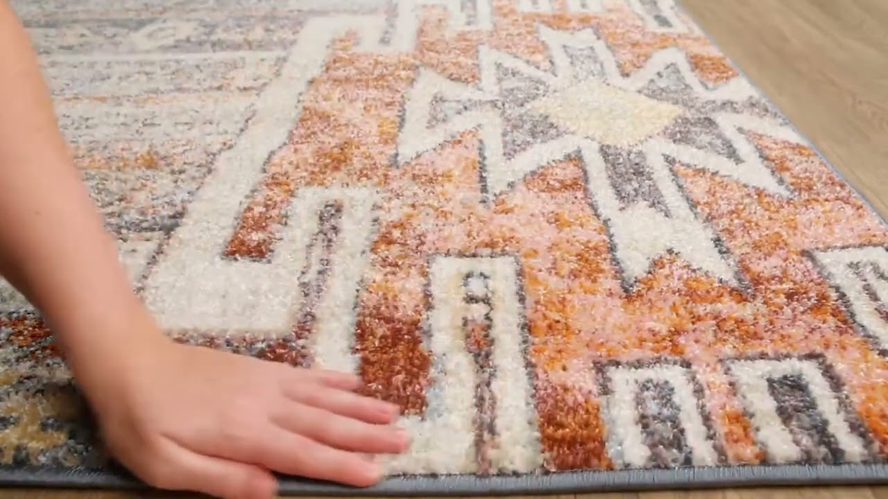 The Blackmoor Aztec Area Rug brings bold tribal character to any room with its striking geometric motifs, layered in a rich palette of slate blue, warm orange, gray, and earthy beige. The pattern draws from classic Aztec and Southwestern design traditions, with a beautifully faded, distressed finish that gives it an aged, well-traveled look without feeling dated. Machine woven in Turkey from 100% polypropylene, this rug is built for real life — stain resistant and durable enough for high-traffic areas like living rooms, dining rooms, and entryways.