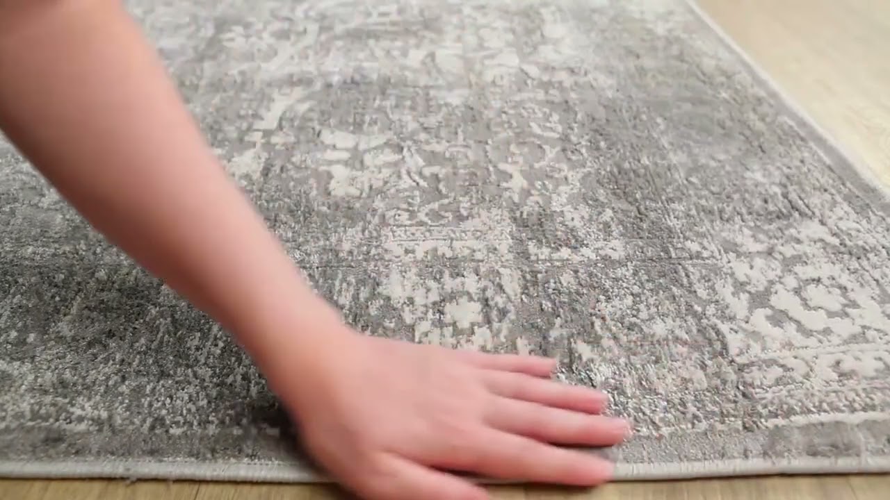 cool paletteA soft, layered gray palette dominates — from cool light silver to mid-tone gray — with faded ivory and cream motifs that give the rug its worn, antique character. The overall effect is quietly sophisticated and effortlessly neutral.