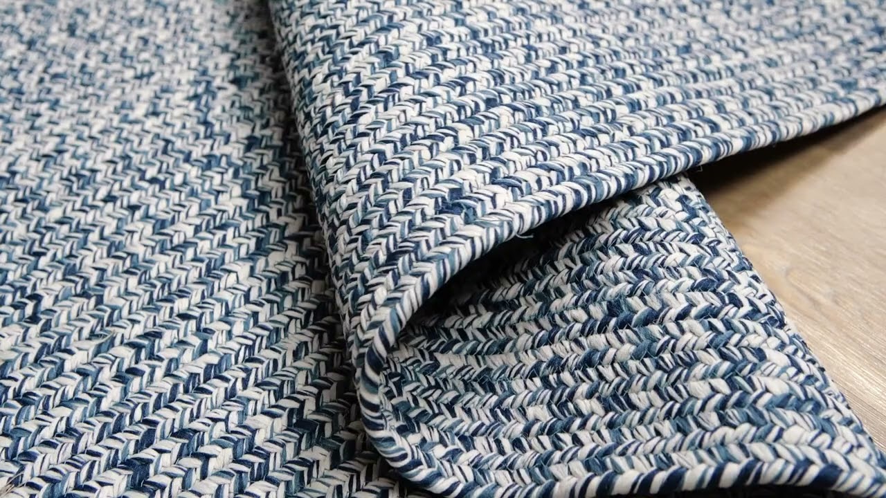 The Chesapeake Bay area rug brings a classic braided look to any indoor or outdoor space with its cool blue and gray tones woven in a concentric rectangular pattern. Made from 100% polypropylene, this machine-woven flatweave rug is built for real life — it's stain resistant, weather resistant, and easy to clean with just a hose and some water. The tightly braided construction gives it a satisfying texture underfoot while keeping it low-profile enough for high-traffic areas, doorways, and outdoor patios.