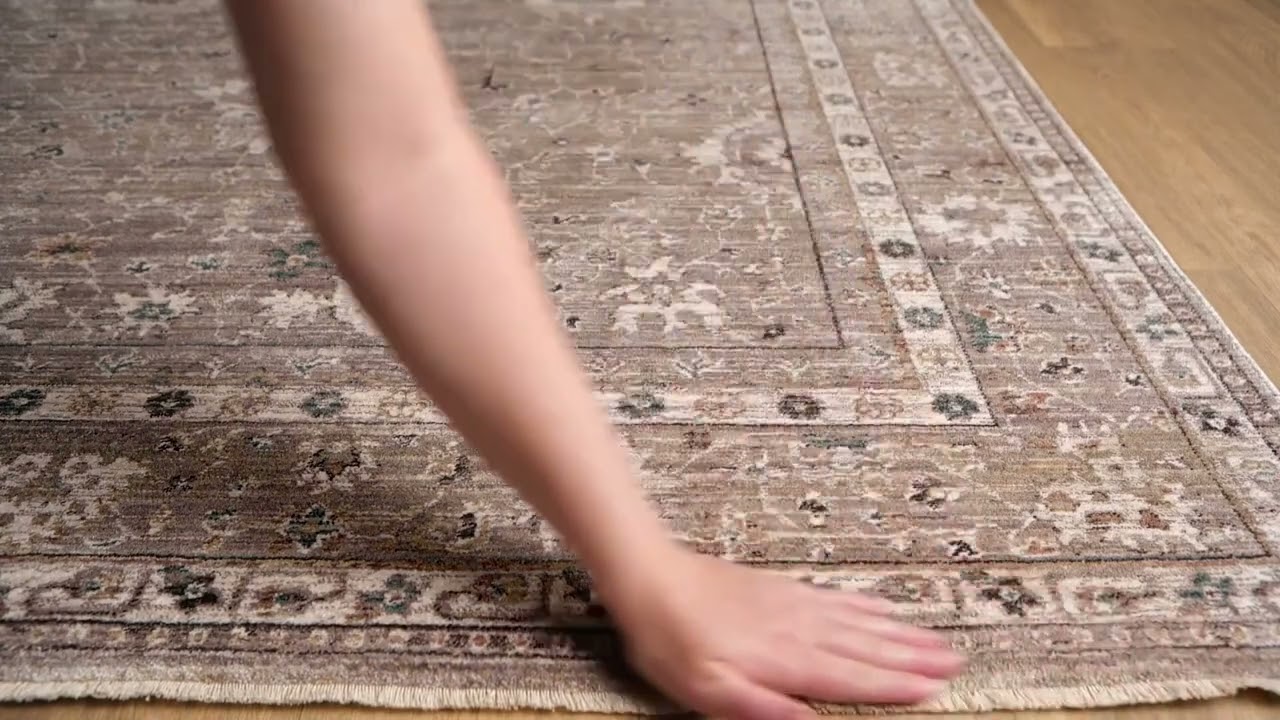 The Bolitoc Area Rug brings timeless traditional elegance to any space with its warm brown and beige palette and intricate Persian-inspired design. The allover field features classic floral and medallion motifs in faded cream and ivory, framed by a beautifully detailed multi-layered border — giving it that coveted antique, slightly distressed look without feeling dated. Small teal and gray accents scattered throughout add just enough color interest to keep the palette from feeling flat.
