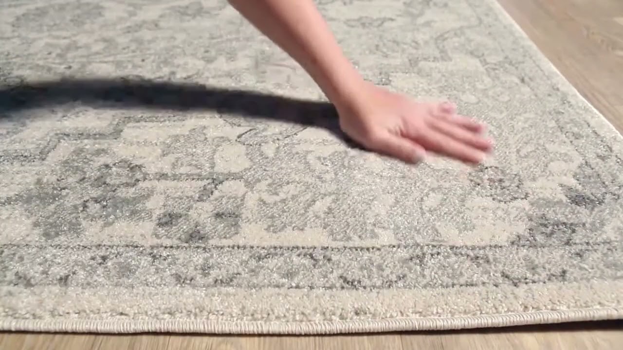 The Borowski Area Rug brings timeless traditional style to any room with its intricate floral medallion design rendered in soft cream, ivory, and gray tones with a subtle hint of cool blue. Machine woven from durable polypropylene in Turkey, this rug features a classic Persian-inspired layout — a central medallion surrounded by scrolling botanical motifs and a detailed border — all in a beautifully muted, neutral palette that works with virtually any decor. The low-profile pile (0.26 inches) keeps it practical for high-traffic areas like entryways, dining rooms, and living rooms, and the stain-resistant polypropylene construction makes spot cleaning a breeze.