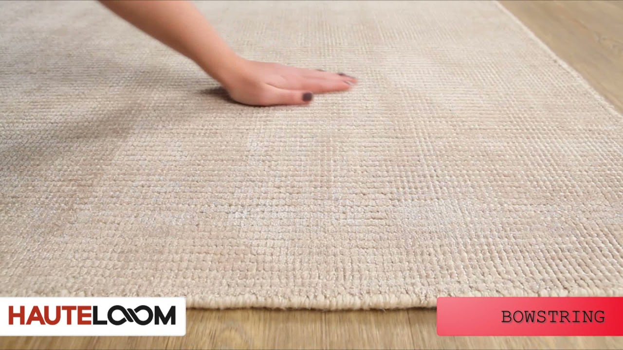 The Bowstring Carpet is a beautifully understated hand-loomed area rug crafted from a luxurious blend of 75% viscose and 25% wool. Its soft cream and ivory palette is almost entirely solid, with a subtle tone-on-tone texture that catches the light thanks to the viscose's natural sheen. At just 0.2 inches of low pile and 0.31 inches total thickness, it lays flat and sleek — ideal for layering under furniture or anchoring a minimalist, Scandinavian, or contemporary room.