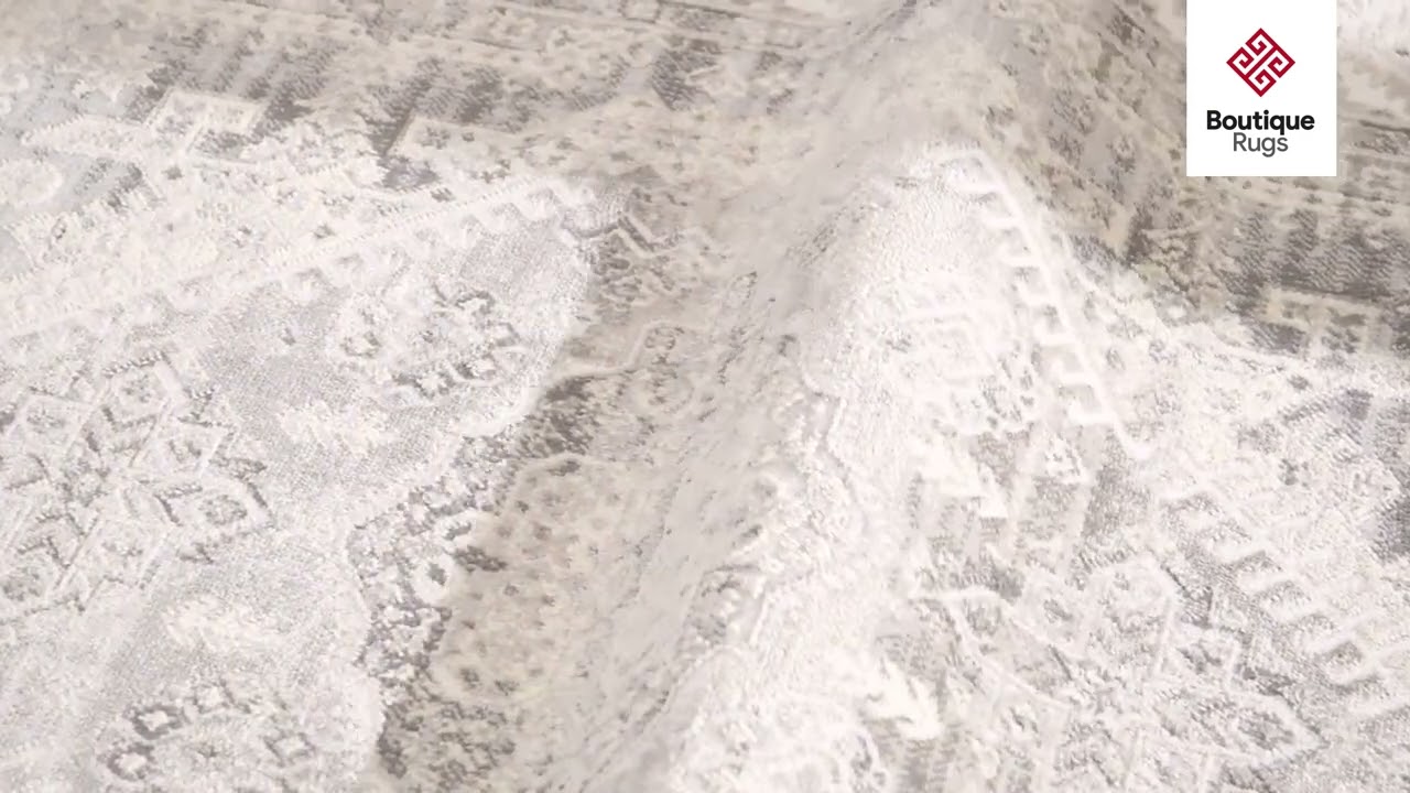 A softly faded gray and cream medallion rug with classic Persian-inspired detail — the look of a vintage heirloom, built for everyday living.