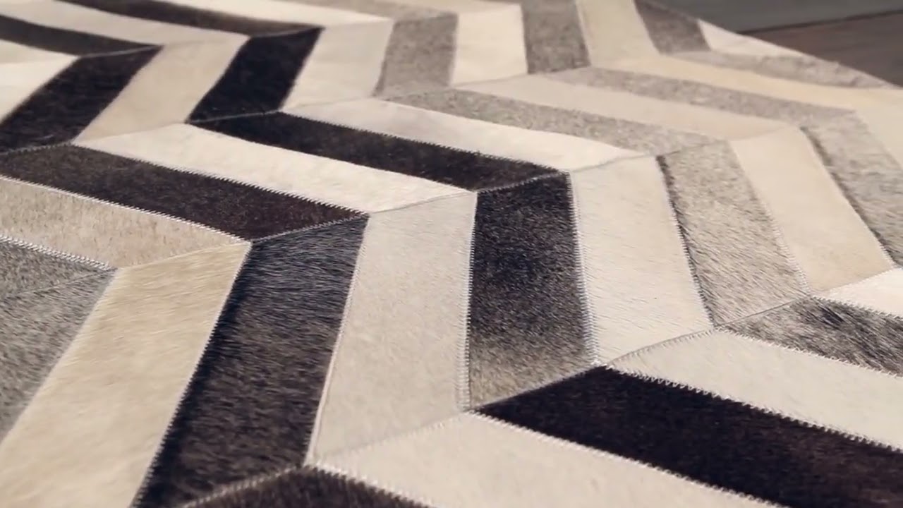 Bold chevron meets natural cowhide — the Bristolville is hand-crafted from 100% hair-on-hide in shifting grays, whites, and blacks for a look that's modern, textural, and completely unique.