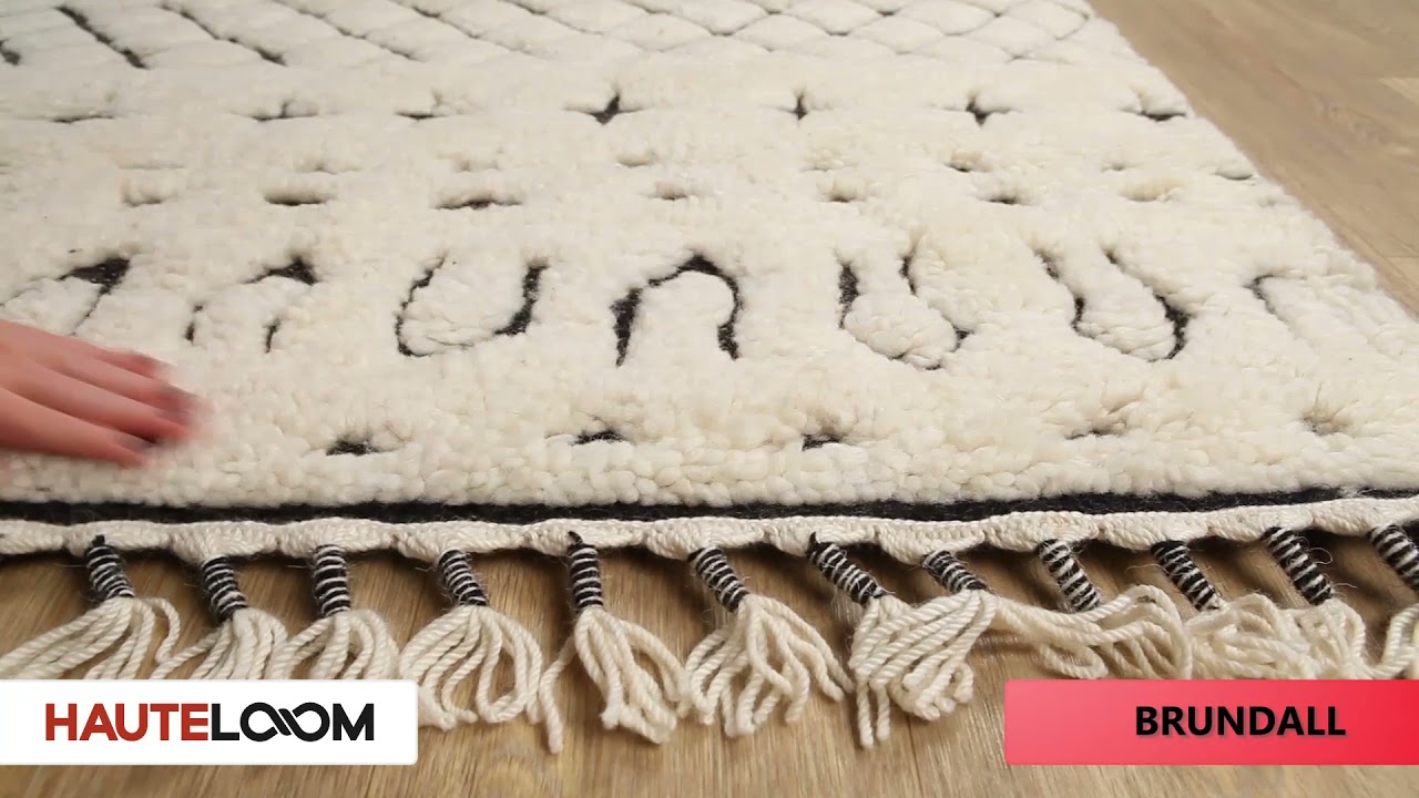 The Brundall Area Rug brings the timeless beauty of Moroccan Berber design into your home with a striking cream and black diamond lattice pattern that feels both ancient and effortlessly modern. Hand-knotted from 100% New Zealand wool in India, this high-pile rug has a plush, thick feel underfoot — the kind of softness you notice the moment you step on it. The bold geometric trellis pattern is framed by decorative border bands of crosses and scalloped motifs, giving it that authentic tribal handmade character.