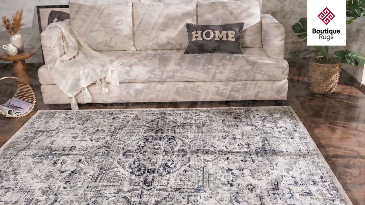 A faded Persian medallion in cream, gray, and navy — this machine-woven polypropylene rug delivers classic elegance with everyday durability and zero shedding.