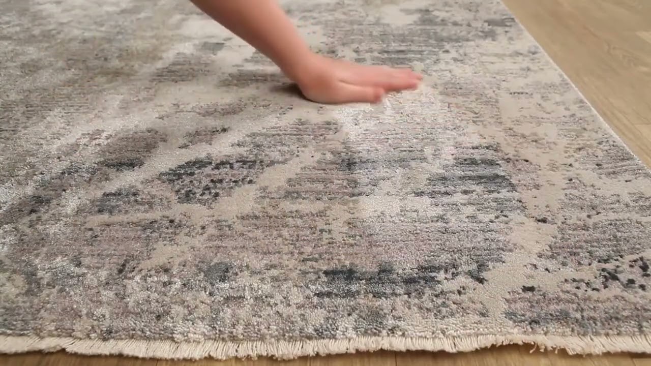 - Allover abstract distressed pattern in gray, beige, and cream