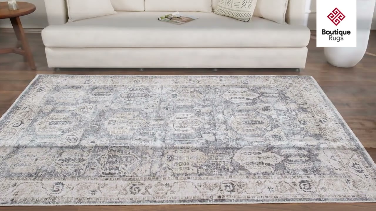 A faded gray Persian-style rug that's fully machine washable — classic allover floral motifs, non-slip backing, and low-profile flatweave for effortless everyday style.