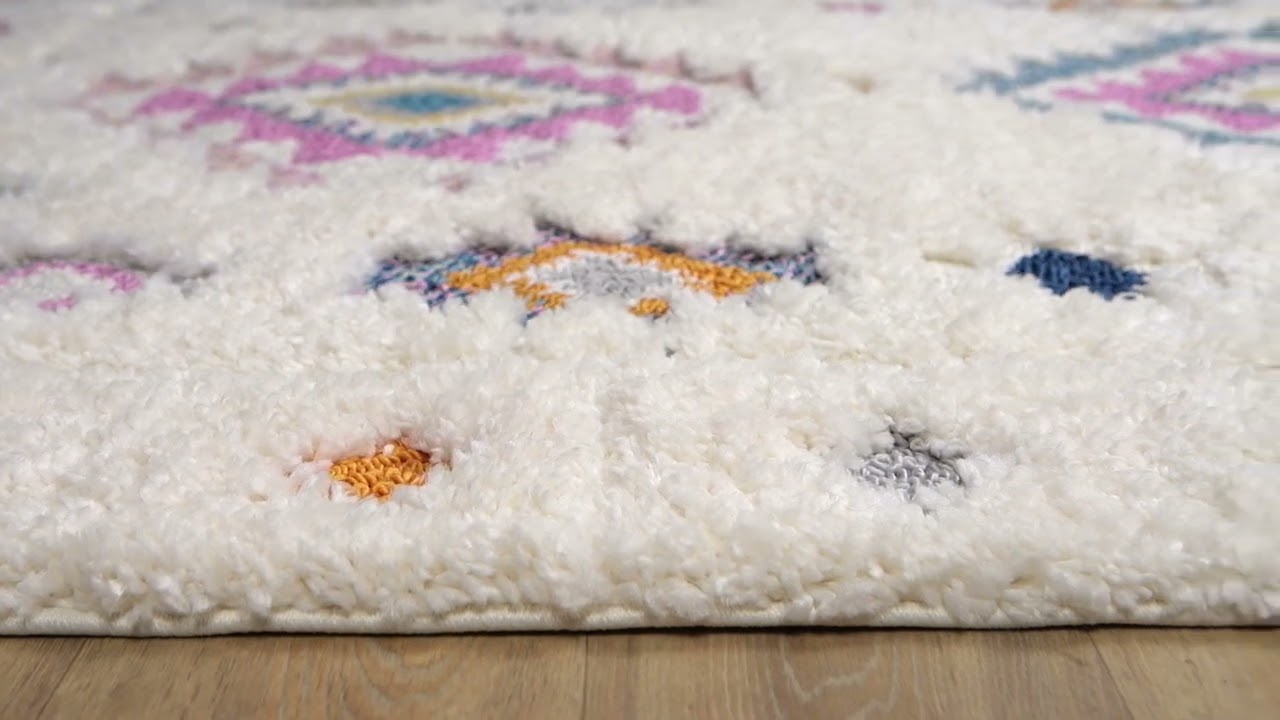 Soft, colorful, and tassel-trimmed — the Catungan brings boho tribal diamond patterns in pink, blue, and cream to nurseries and kids' rooms with plush, no-shed comfort.