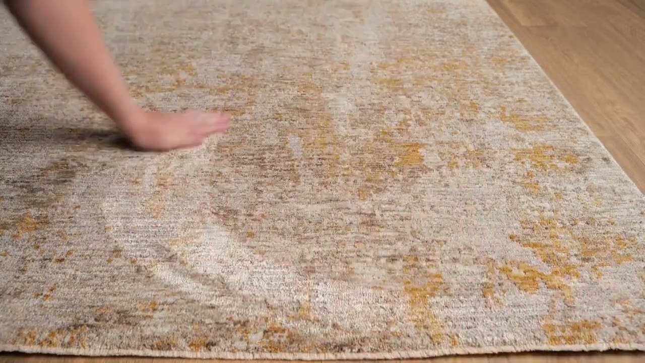 Warm mustard gold meets a beautifully faded abstract pattern — the Cayhagan brings earthy, modern depth to any room with its fringe-edged finish.