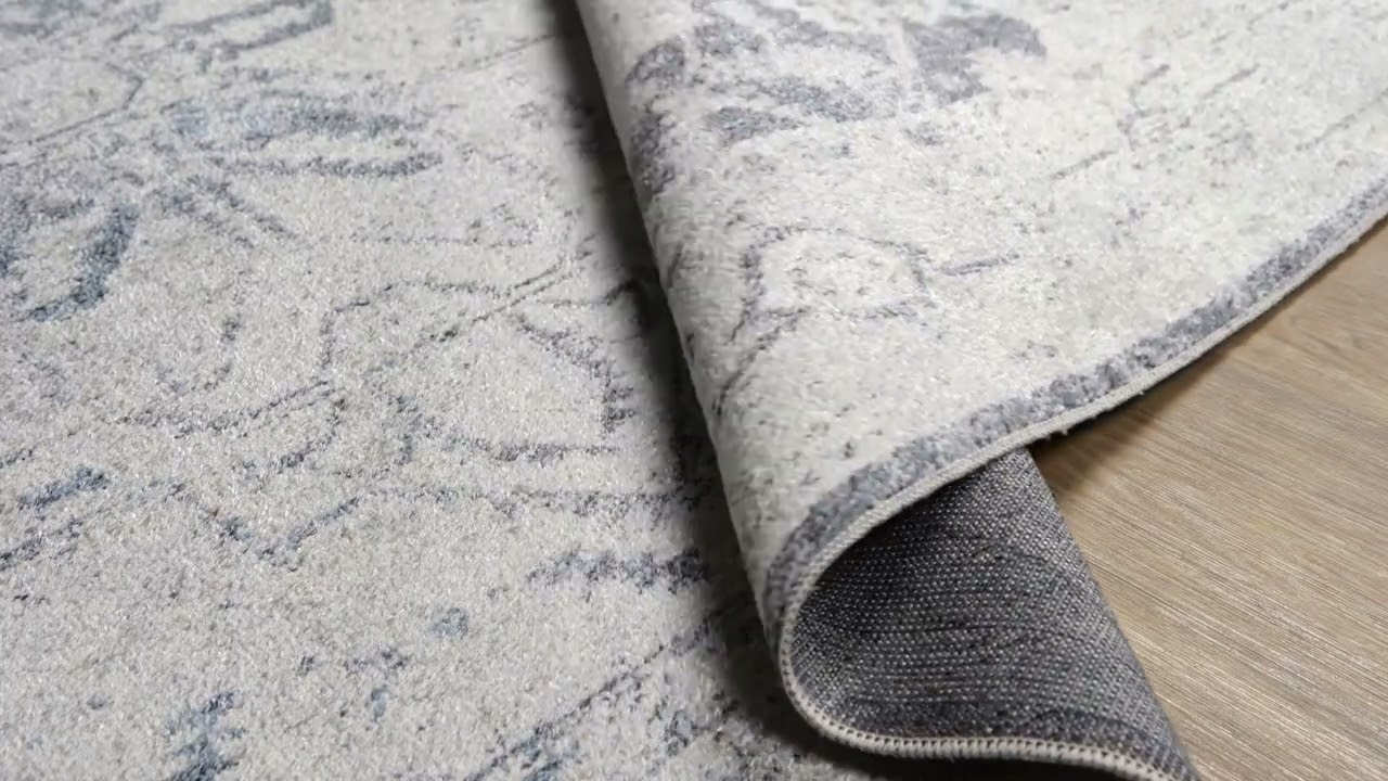A faded Persian medallion in soft ivory and gray — fully machine washable and gorgeous enough to be the centerpiece of any room.