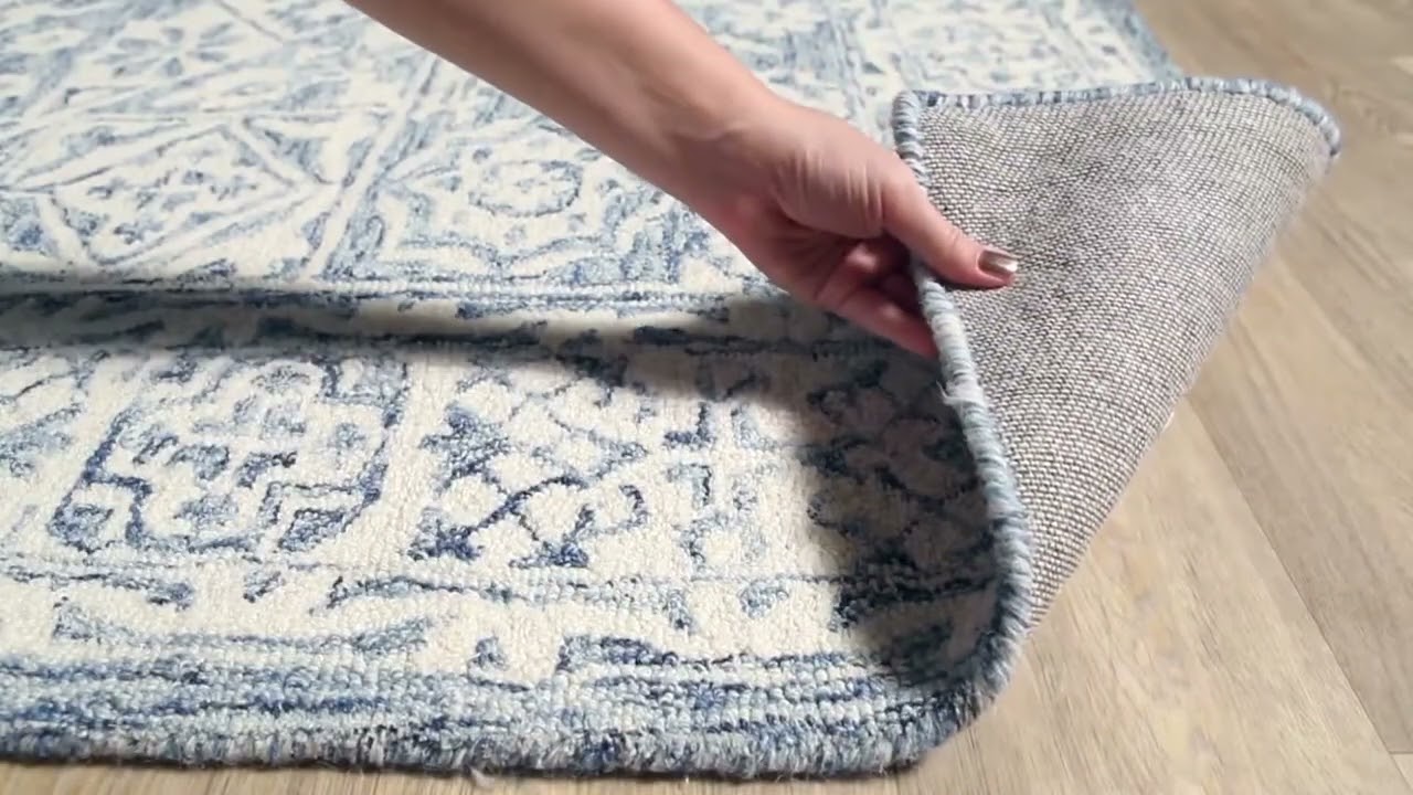 A stunning blue and white medallion rug hand tufted in 100% wool — customers say it looks even better in person and instantly brightens any room.