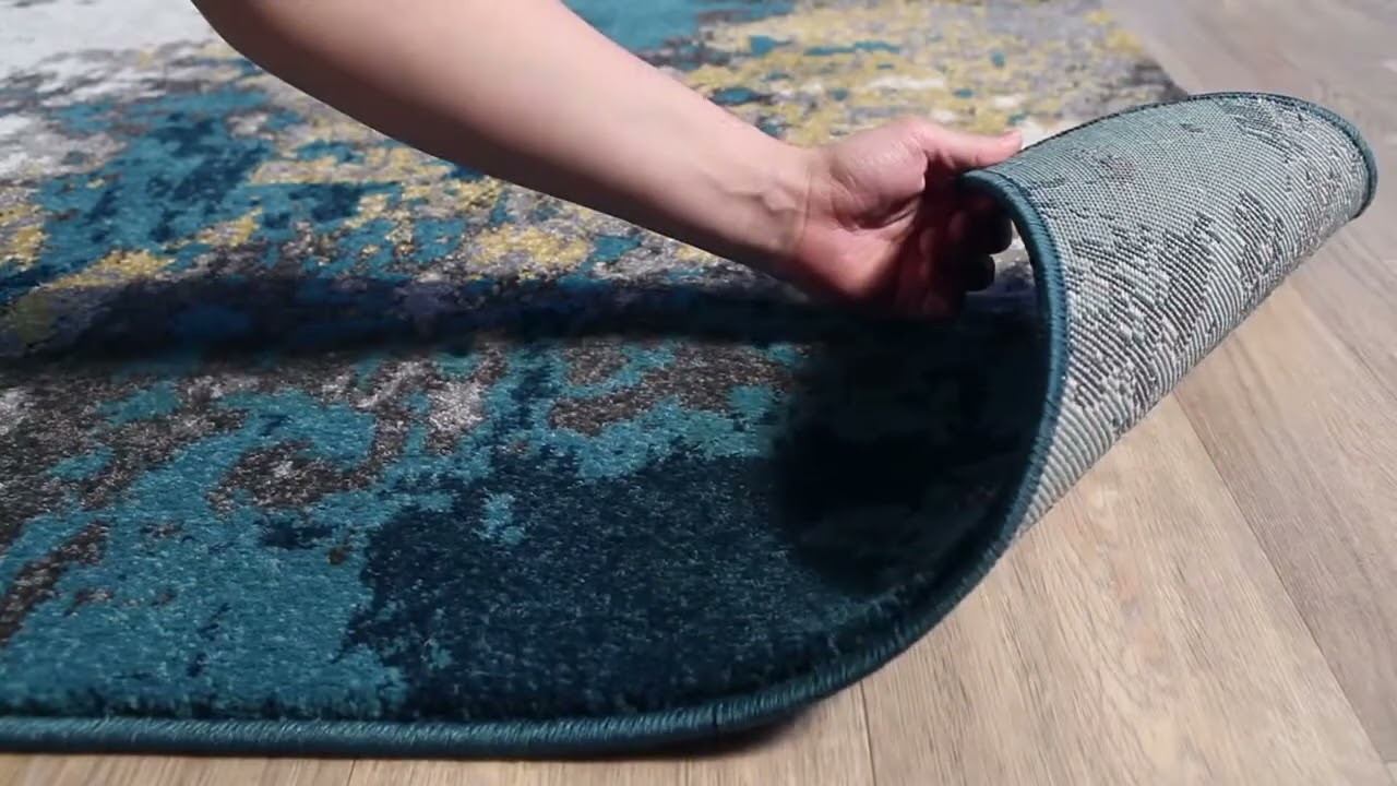 A bold, painterly swirl of teal, mustard, and cream — the Dover turns your floor into a modern art statement. Stain-resistant polypropylene built for everyday life.