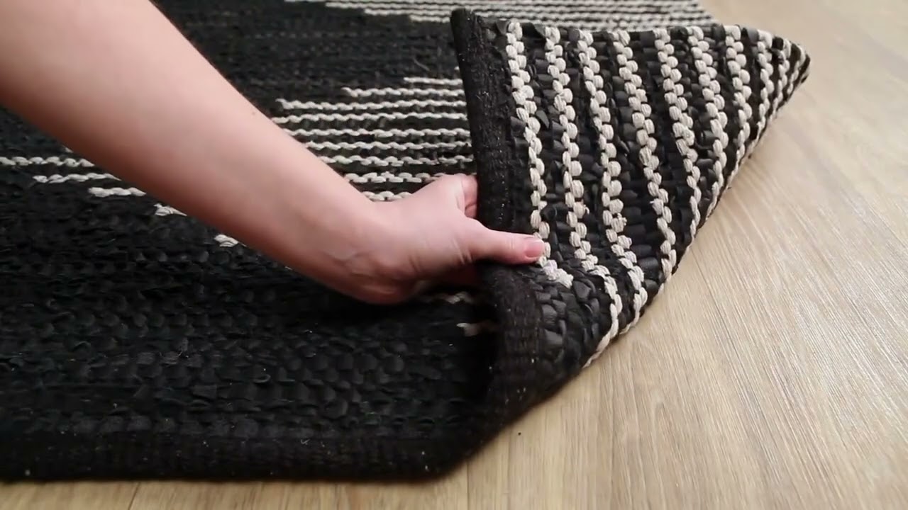 The monochromatic palette is endlessly versatile — it anchors a room without competing with bold furniture or accent colors. At 1 inch thick with no backing, pairing it with a quality rug pad is recommended for grip and comfort. Spot clean only to preserve the leather and cotton fibers.