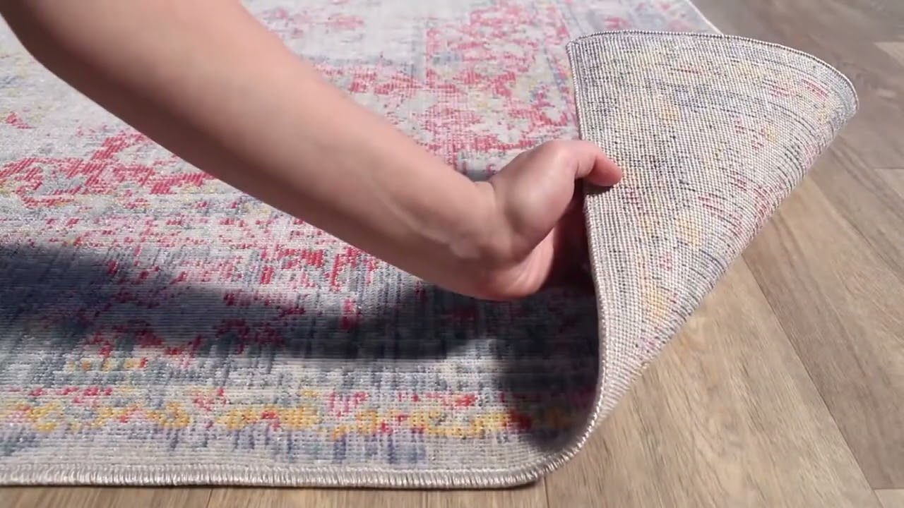 The Eufaula Area Rug brings a beautifully faded, vintage-inspired Persian medallion design to life in a soft, multicolor palette of blush pink, light gray, dusty blue, and golden yellow accents. The intentionally distressed finish gives it that coveted worn-in look — like a treasured antique find — while the machine-woven polyester construction keeps it practical and affordable. At just 0.08 inches of low pile, it lays flat and smooth, making it ideal for high-traffic areas, home offices with rolling chairs, and layering over larger rugs.