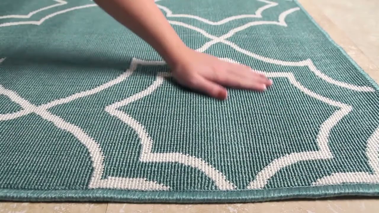 The Folsom Area Rug brings a fresh, breezy energy to any space with its classic Moroccan trellis pattern in soft teal and crisp white. The repeating quatrefoil lattice design is bold enough to anchor a room but clean enough to work with almost any decor — from coastal living rooms to covered patios. Made from 100% durable Olefin (polypropylene), this machine-woven flatweave is built for real life: it's outdoor-safe, water-resistant, and easy to clean — just hose it off and let it dry.