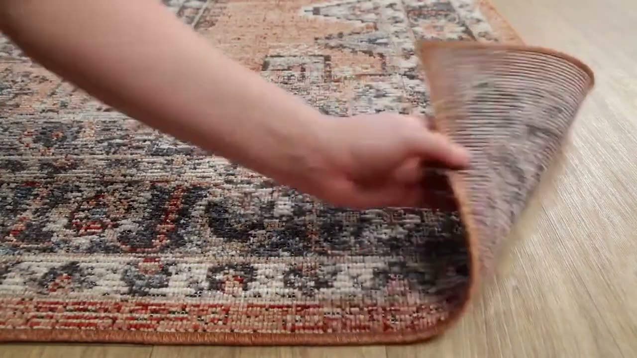 A warm rust Persian medallion rug that looks like an antique heirloom — but handles patios, porches, and high-traffic rooms with ease.