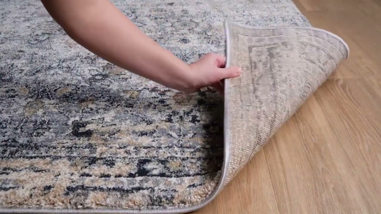 The high pile (0.54 inches) and generous 0.87-inch thickness make it noticeably plush underfoot — customers consistently rave about how thick and soft it feels. The cool-toned denim and tan palette is versatile enough to anchor a living room, bedroom, or dining space, and the classic border framing the allover damask pattern adds a polished, finished look. Spot clean with mild detergent as needed, and pair with a rug pad for added cushioning and grip.