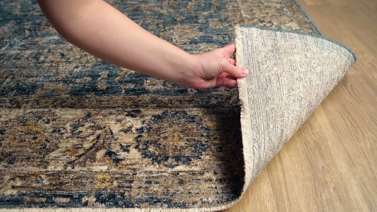 The Gimli Area Rug brings timeless oriental charm to any room with its rich slate blue field filled with intricate traditional floral motifs and a classic cream and beige border. The gently distressed, faded finish gives it an antique, heirloom quality that feels both storied and sophisticated — without the price tag of a true vintage piece. Machine woven from durable 100% polyester, this medium-pile rug is built to handle everyday life in high-traffic areas while maintaining its beauty.