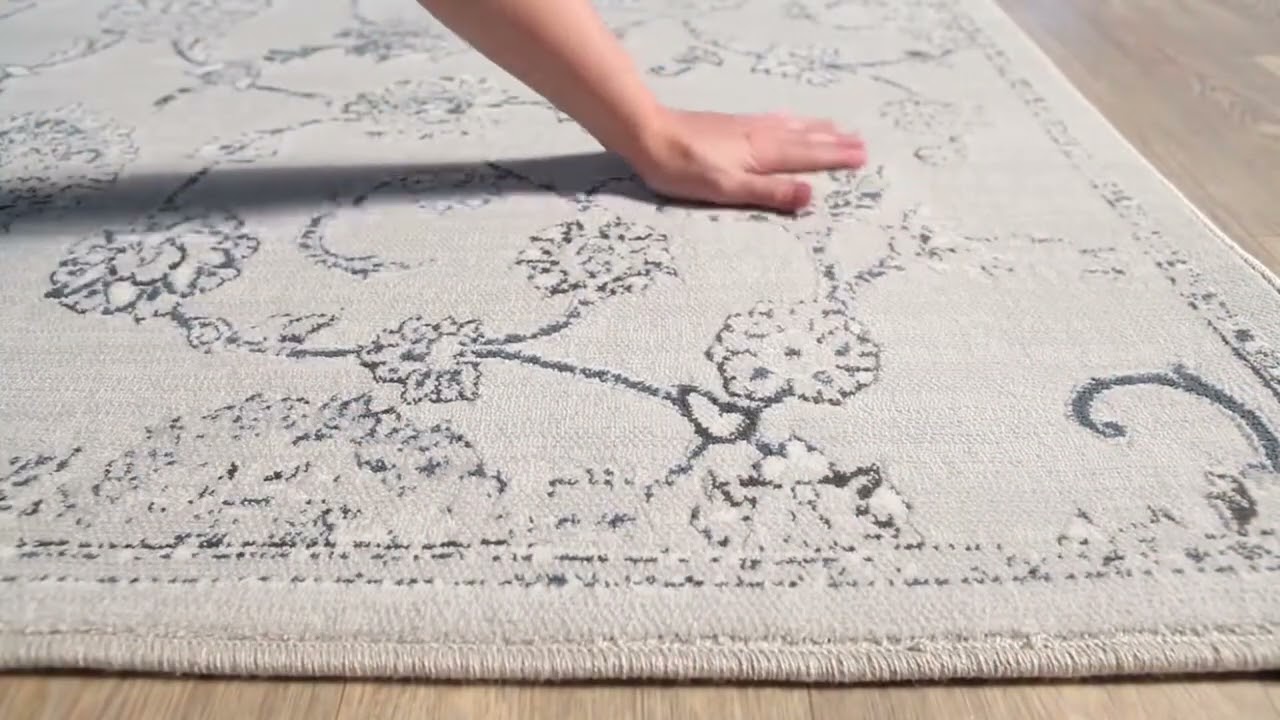The Greenleaf Area Rug brings timeless elegance to any room with its soft ivory and gray palette layered with delicate blue-gray floral scrollwork and a gently faded, distressed finish. The allover pattern of swirling vines, blossoms, and botanical motifs draws from classic Persian and traditional design traditions, giving it that coveted antique-inspired look without feeling stuffy. Machine woven from 100% polypropylene in Belgium, this rug is built for real life — it's stain resistant, high-traffic ready, and easy to maintain with spot cleaning.