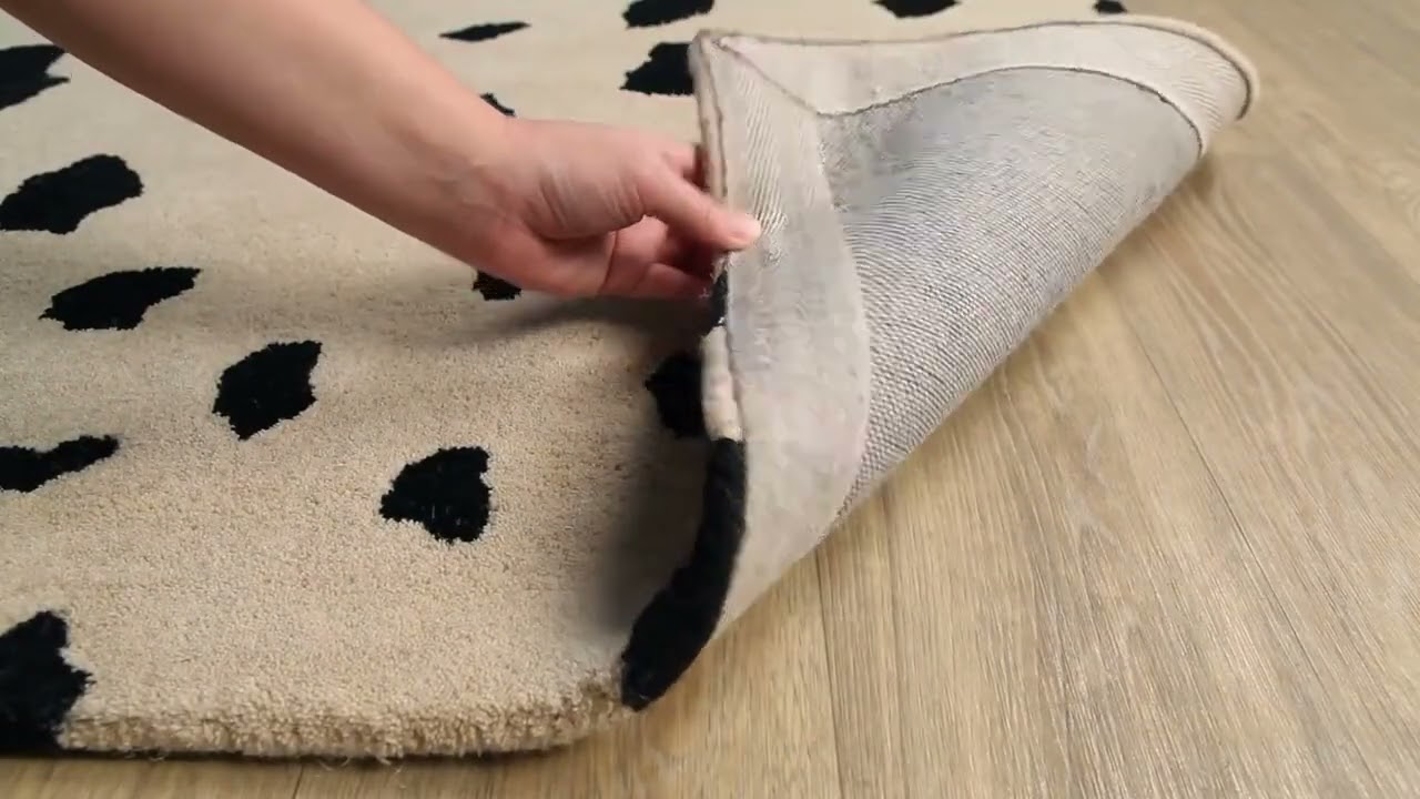 The Guiseley Dalmatian Area Rug is a bold yet neutral statement piece that brings playful sophistication to any room. Crafted from 100% wool and hand-tufted by skilled Indian artisans, this rug features an allover dalmatian-inspired spot pattern — irregular black spots scattered across a warm cream background that feels both modern and timeless. The medium pile (0.47 inches) delivers a satisfying softness underfoot, and customers consistently rave about how thick and plush it feels for the price.