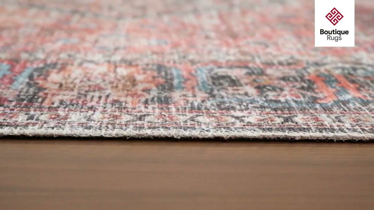 The Holi-2302 is a stunning washable vintage-style area rug that brings the timeless beauty of Persian design into modern, easy-care living. Its rich burgundy center medallion is framed by layers of intricate floral scrollwork and a classic border, all rendered in a beautifully faded palette of deep red, dusty blue, teal, and soft gray — giving it that coveted antique, sun-worn look. Made from 100% polyester with a low 0.12-inch pile and a rubber non-slip backing, this rug is as practical as it is gorgeous.