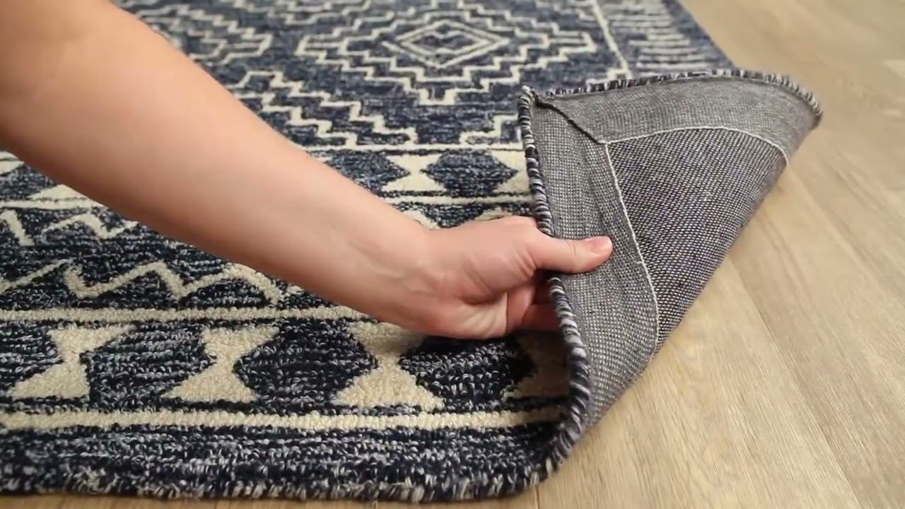 Bold navy and cream tribal diamonds in 100% hand-tufted wool — the Horton brings global warmth and artisan texture to any living room or bedroom.