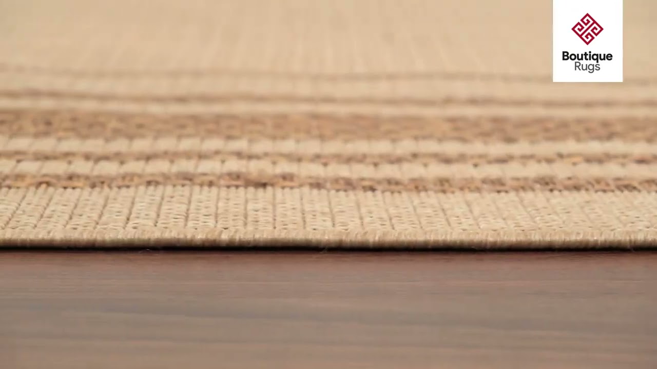 The Isoko Area Rug brings clean, understated style to any outdoor or indoor space with its classic multi-border design in warm beige and tan tones. Machine woven from 100% polypropylene, this flatweave rug is built to handle high traffic, resist moisture, and stand up to the elements — making it ideal for patios, decks, covered porches, and sunrooms. The layered border framing a solid center gives it a timeless, minimalist look that pairs effortlessly with modern, contemporary, or farmhouse aesthetics.