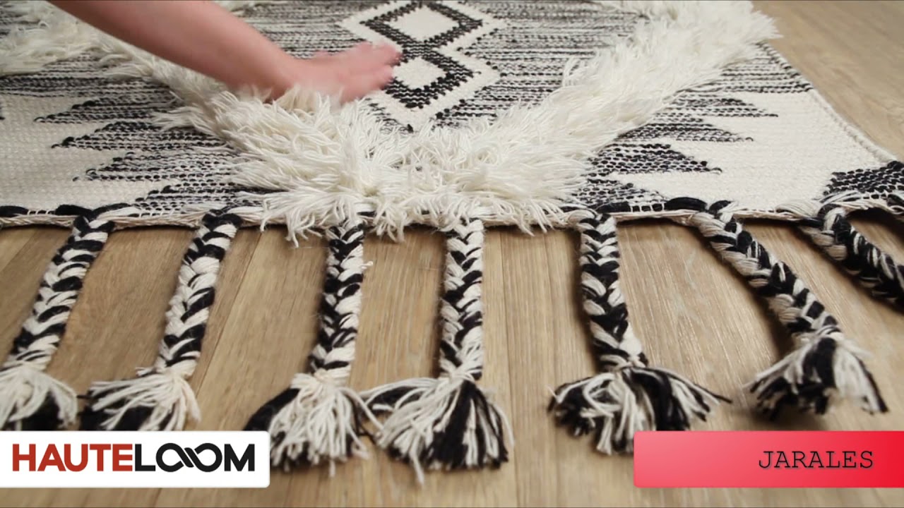 Jarales Cream/Black Tribal Tassel Wool Rug - Clearance