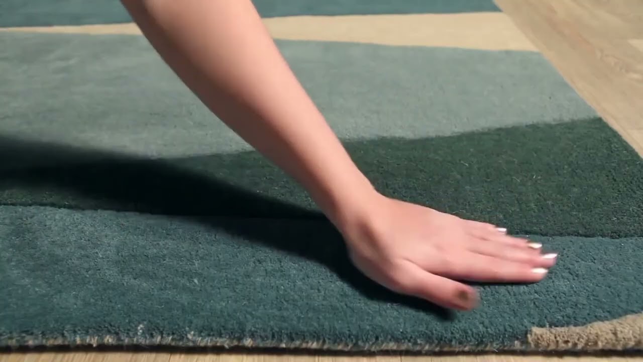 Sweeping teal and blue abstract waves in 100% hand-tufted wool — the Jarratt is thick, plush, and genuinely stunning in person. A modern statement rug that customers call a keeper.