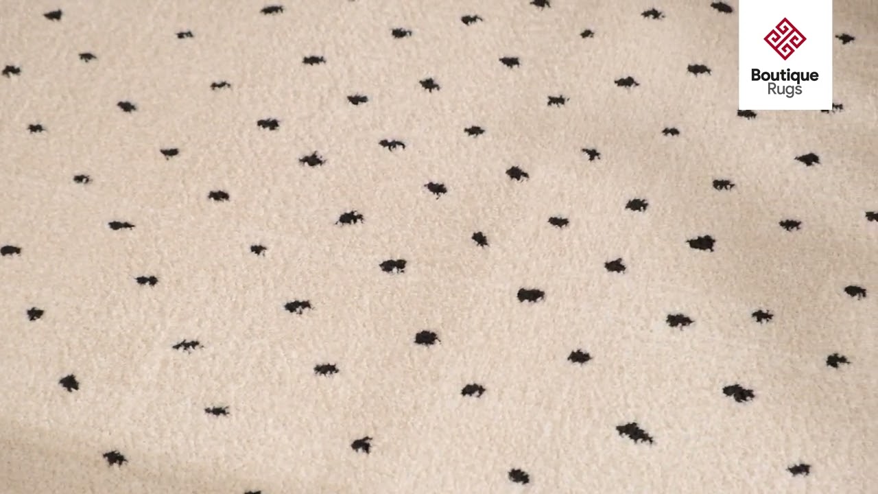 Scattered black dots on a cloud-soft ivory base — the Julie Area Rug brings minimalist charm and plush comfort to any room in your home.