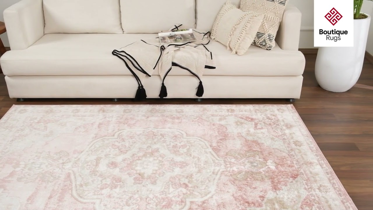 A rug pad is recommended to keep it in place and add extra cushion. If you're searching for the perfect baby pink rug that's as practical as it is pretty, the Kandos delivers.