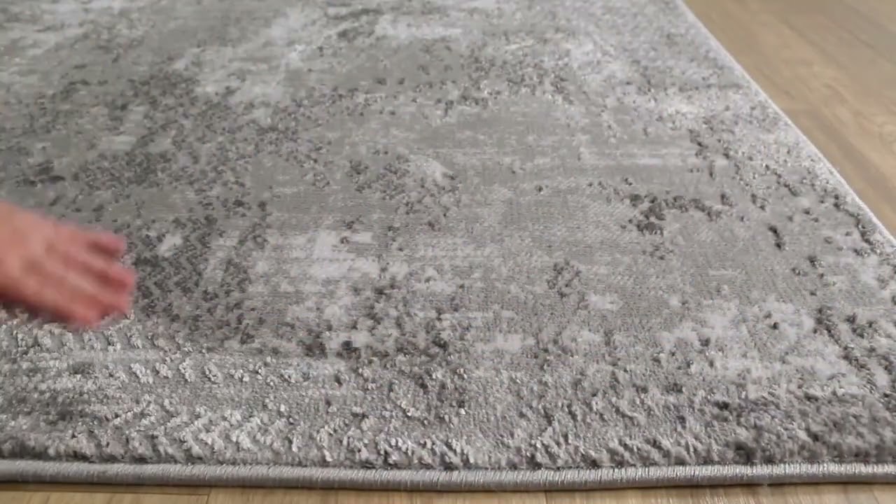 A soft gray and cream abstract rug with a beautifully distressed, faded finish — the kind of effortless, layered look that makes any room feel instantly pulled together.