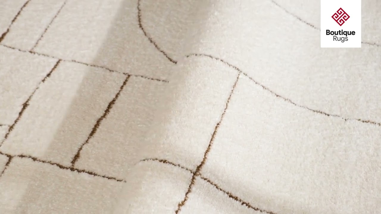A cream canvas traced with architectural brown lines — the Keats turns minimalist geometry into a plush, conversation-starting floor piece.