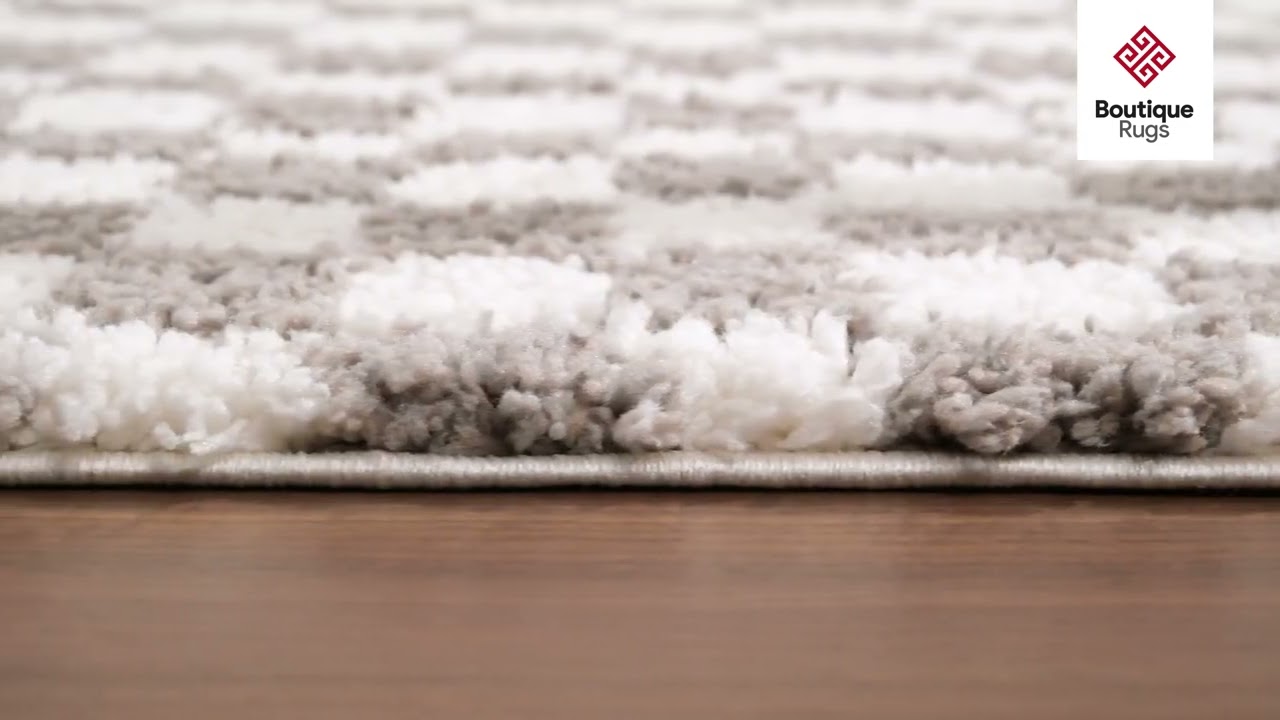 Thick, cloud-soft checkerboard shag in warm taupe and cream — the Kieu rug turns any floor into a cozy statement. Nearly 2 inches of plush pile you'll want to sink your toes into.