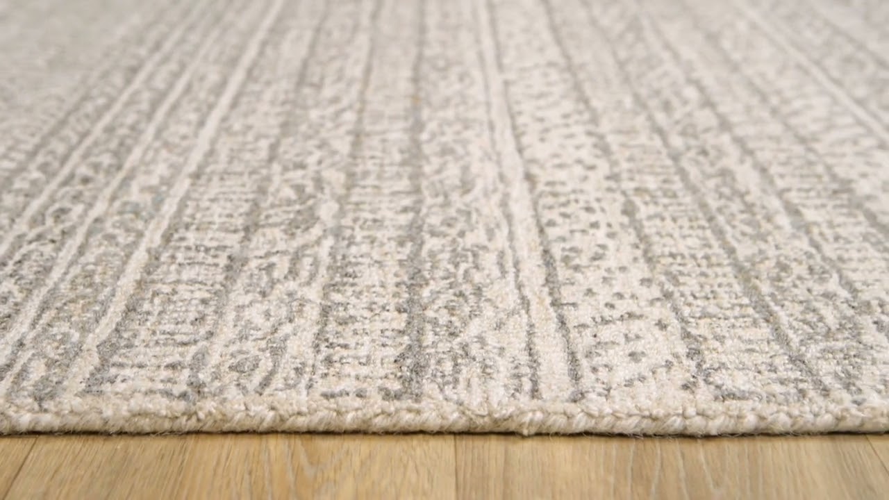 The Kinmundy Tufted Maroc Wool Area Rug brings a quiet, globally inspired elegance to any room. Woven in a soft palette of light gray and off-white, this rug features horizontal bands of intricate Moroccan-inspired geometric motifs — subtle enough to complement almost any décor, yet detailed enough to be the room's quiet focal point. Hand-tufted from 100% wool in India, it has a low pile (0.19 inches) that sits close to the floor, making it ideal for high-traffic areas and easy to pair with furniture.