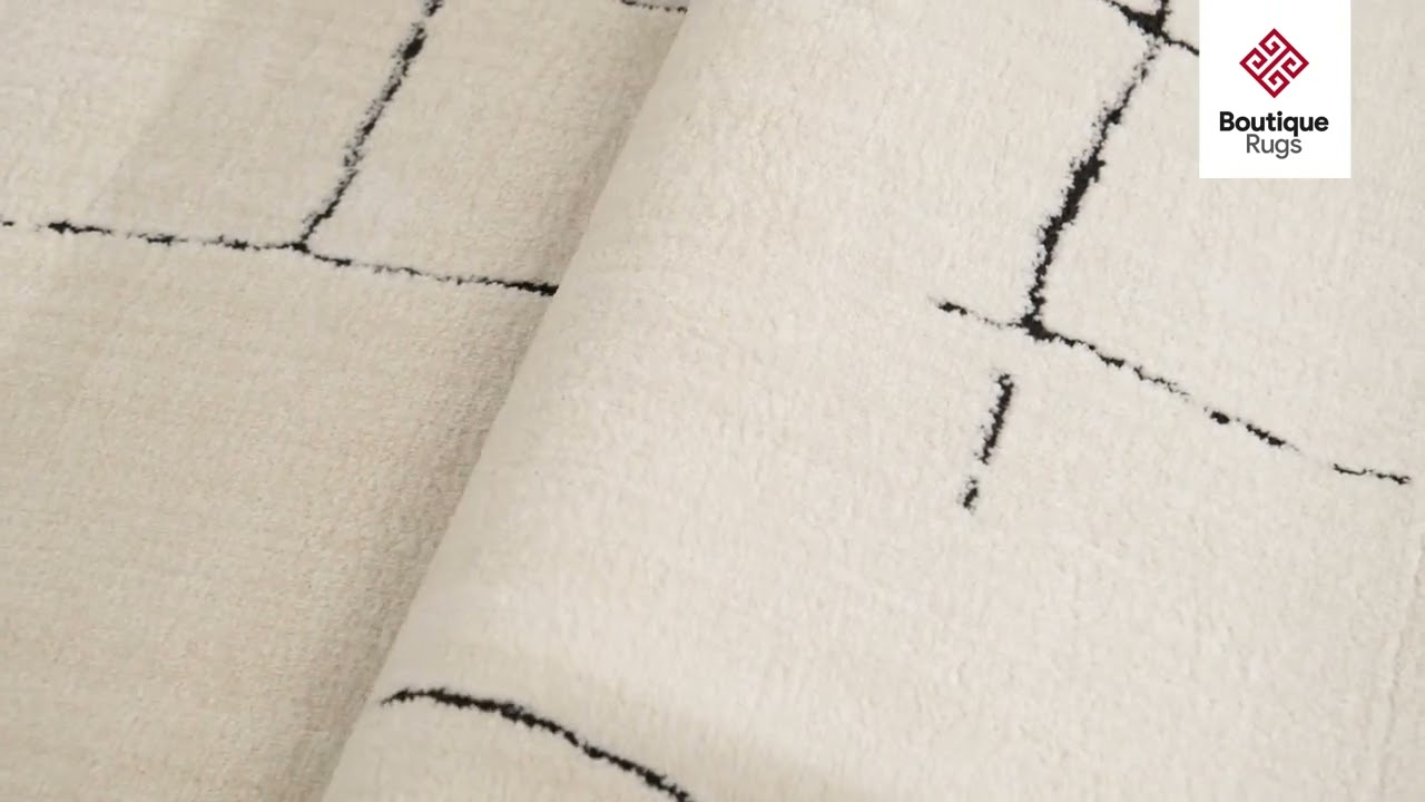 A soft cream canvas crossed with bold, hand-drawn black grid lines — the Koume brings modern minimalist art to your floor with a plush 0.55" pile.