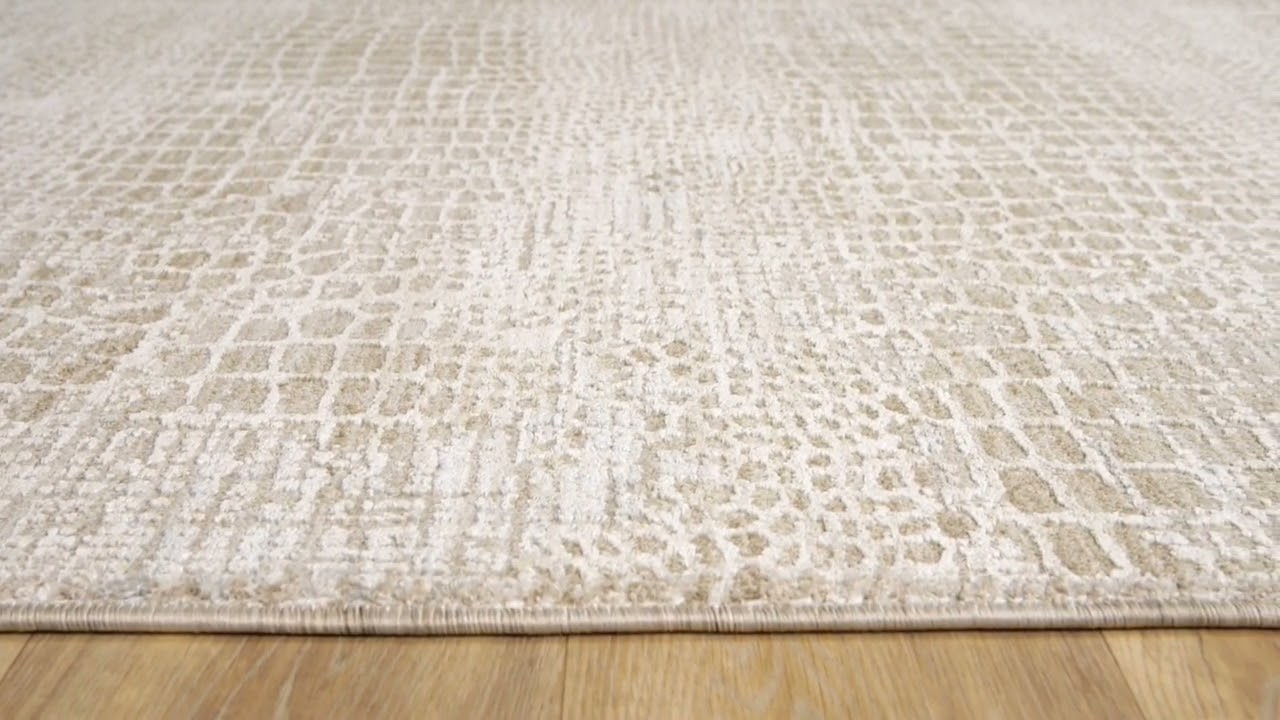 The Laina Area Rug brings a calm, understated elegance to any room with its soft beige and gray tonal palette and subtle abstract texture. Machine woven from a blend of polyester and cotton, this medium-pile rug has a beautifully organic, almost crocodile-skin-like surface pattern that catches light in a way that feels both modern and timeless. The delicate fringe edge adds a refined finishing touch without veering into boho territory — it's clean, minimal, and versatile.