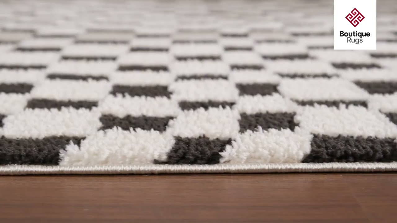 Lajos Black & White Checkered Plush Rug